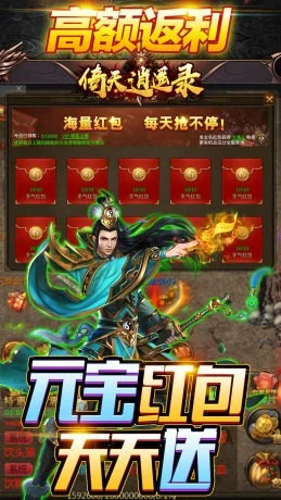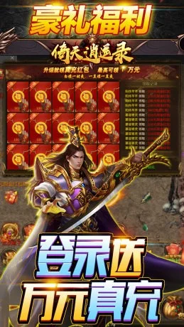 这是一款复刻电脑端传奇经典玩法,加入深度改版的传奇题材手游。登陆即送VIP7,连续登录7天领5000次寻宝最高出终极,首充礼包领全职业通用绝版神兵黄金逍遥、满阶天狼,升级可领万元充值卡,每日抢10W元宝红包,天天登陆领真充领时装,三职业修正平衡,高智能挂机刷怪,小怪掉终极装备,全地图开服红名PK,每周一三五8点激情攻沙,不充值也能爽玩一整年。