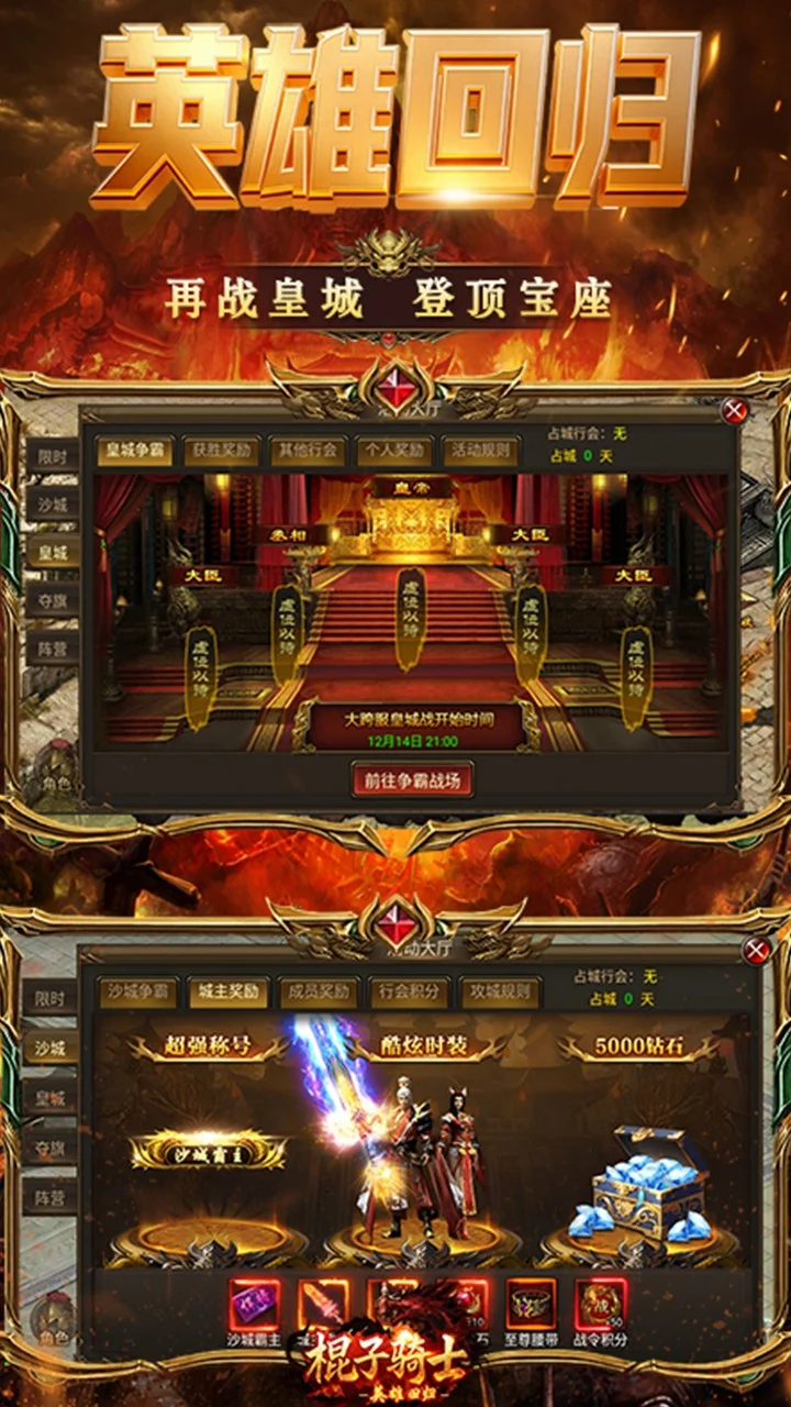 本游戏以大世界、多人在线玩法为主,基于经典三职业玩法,对画面和玩法做了全面升级。英雄合体全新玩法解锁,开放多线英雄培养,合击技能新体 验!经典传奇地图,多样装备体系,体验全新PVE和PVP、跨服攻沙等多种世界交互玩法。自由PK、万人攻沙,决战千里之外!皇城之战,谁与争锋!开启属于你的传奇霸业。