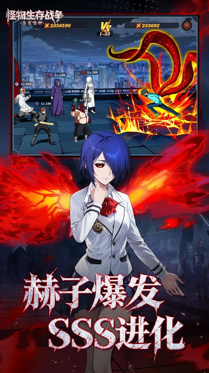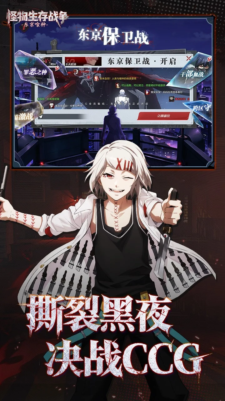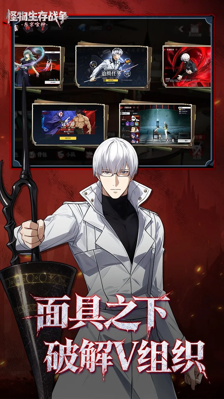 以金木研为首的《怪物生存战争》即将揭开帷幕:以赫子为刃穿梭东京街巷,在 20 区的废墟中抵御 CCG 围剿,向 “V” 组织的隐秘据点,探寻喰种起源的真相,改写人与喰种的命运走向!