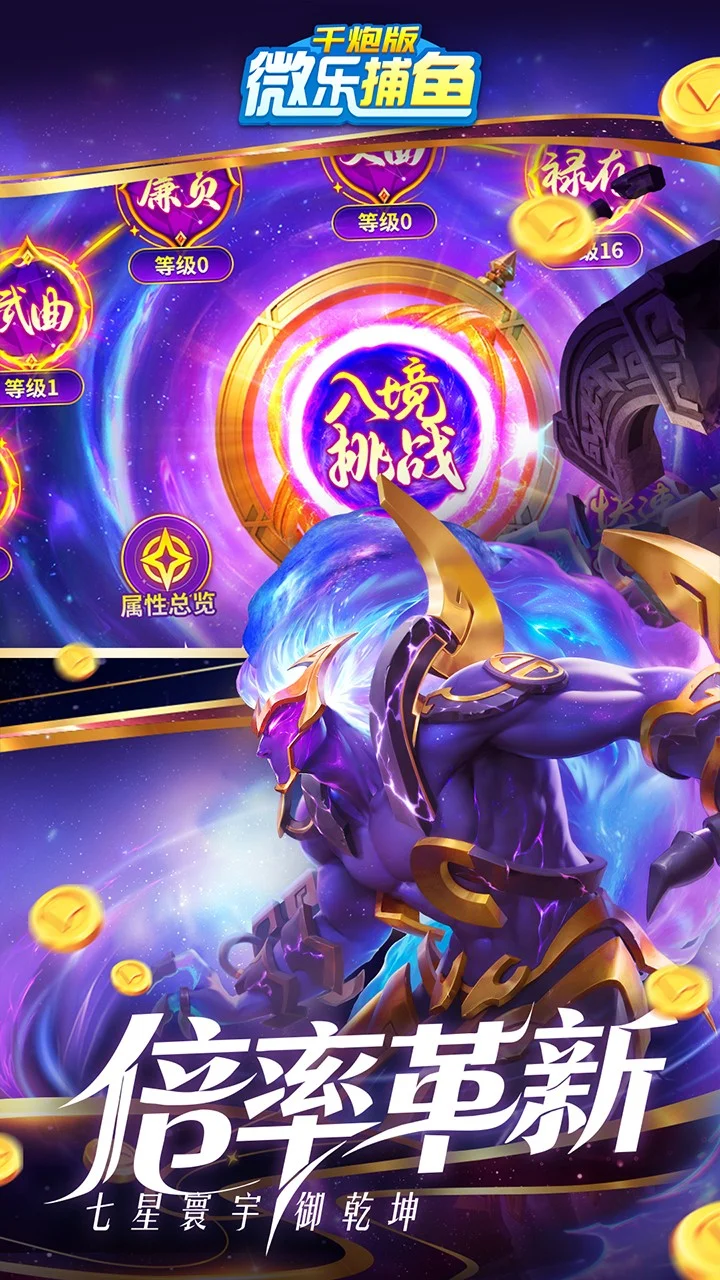 新战神、赛季手册、战神夺宝、各类活动等多项更新,带给您全方位的沉浸捕鱼体验!【战神降世炮镇八荒】登录即可五选一任意领取战神,同时融合养成玩法让捕鱼更刺