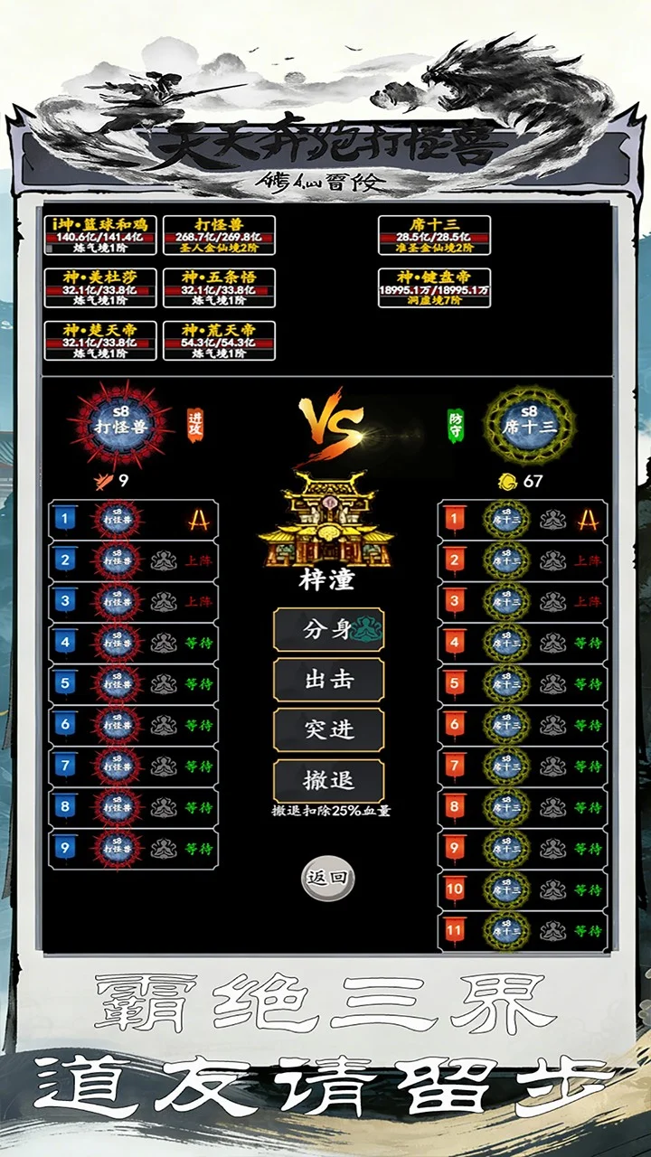 一款以文字为主、简画风格的修仙放置游戏。玩家将扮演一位寻仙问道的普通凡人在四大种族历练,通过自身努力修炼,摆脱肉体桎梏,渡劫逆袭成仙。游戏围绕“修仙” 设计了丰富内容,包括国战修仙、放置历练、功法系统、装备系统等,玩家可御剑历练、独自探险,获得绝世宝藏。