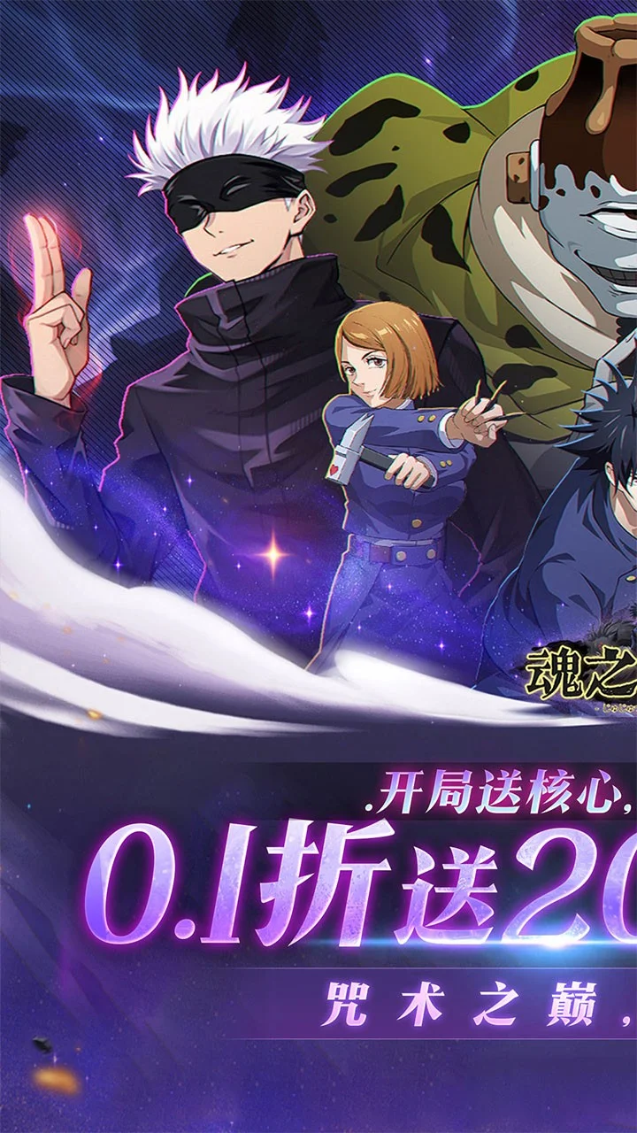 一款以超人气动漫《咒术回战》IP打造的竖版卡牌策略手游。游戏再度复现原作世界观,沉浸式体验咒术战斗!玩家可收集虎杖悠仁、五条悟、伏黑惠等超人气角色,组建最强咒术小队!签到即送充值券和核心UR卡牌——五条悟·涩谷!日常活跃即送千元代金券券!