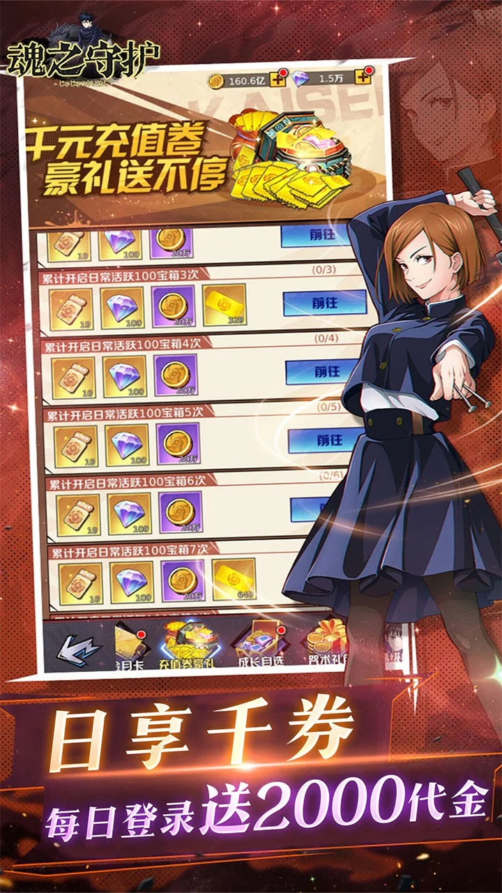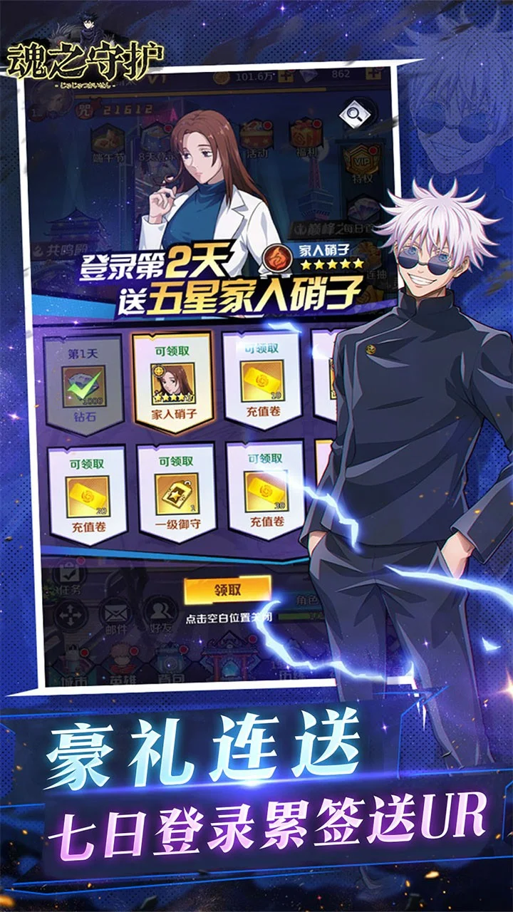 《魂之守护》是一款以超人气动漫《咒术回战》IP打造的竖版卡牌策略手游。游戏再度复现原作世界观,沉浸式体验咒术战斗!玩家可收集虎杖悠仁、五条悟、伏黑惠等超人气角色,组建最强咒术小队!签到即送充值券和核心UR卡牌——五条悟·涩谷!日常活跃即送千元代金券券!开启你的咒术巅峰之战!