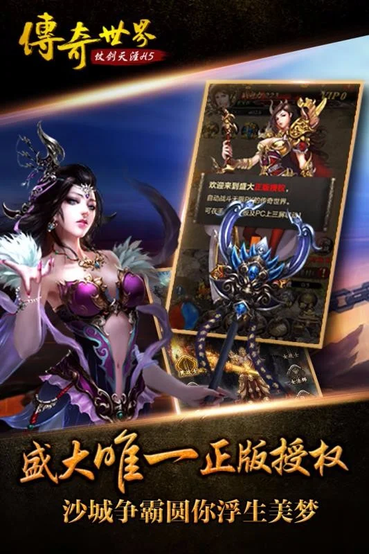 《传奇世界之仗剑天涯H5》是由盛大唯一正版授权,蝴蝶互动倾力打造并发行的首款大型动作类ARPG游戏。经典传奇世界设定,原汁原味复刻传奇世界核心玩法,重磅版本“全民攻沙”震撼来袭~热血攻沙、决战皇城、红名杀敌、夺宝PK、元婴淬炼、红名 爆装,劲爽PK,特色BOSS关卡,跨服行会争霸,勇夺"沙城”霸主!!在这里,玩家将再次开启经典传奇之旅,重温兄弟情谊、怀旧激情年代、成就传奇人生。