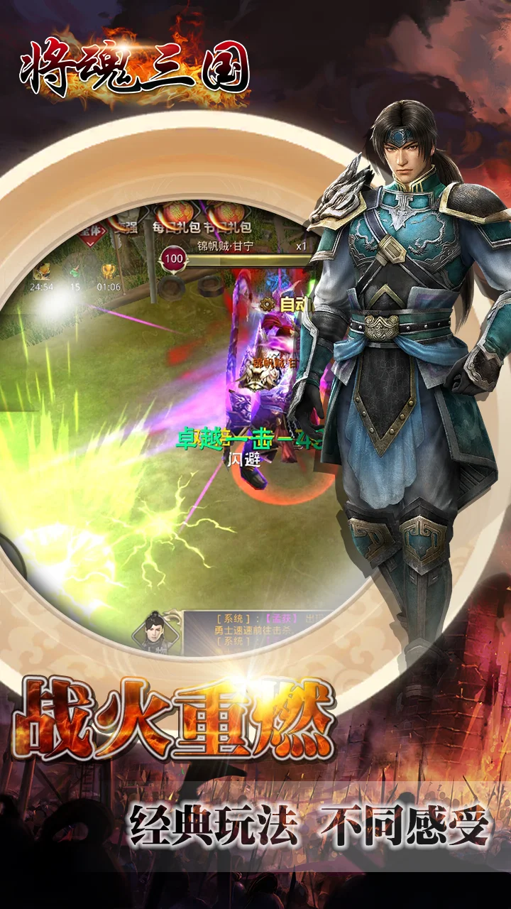 《将魂三国》是一款三国题材的MMO游戏,游戏画面贴合三国故事画风,高度还原三国时期各个风云人物。佩戴不同的魂将,游戏内将会根据佩戴魂将的不同,变成不同的魂将外观。同时炫酷的全凭技能,无差别技能释放,也是《魂将三国》最亮的一个设定。绚丽的翅膀外观、婀娜多姿的部将,也是游戏一大特色。游戏内的“演义”系统,高度还原三国时期最著名的几大战役,真实的让玩家体验到当时的战斗情景。