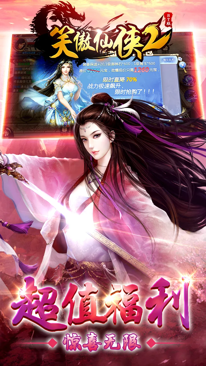 《笑傲仙侠2-BT版》是一款以仙侠题材为背景的游戏,匠心打造恢宏气魄的中华威仪,带你领略气吞山河的仙侠世界、参与大气磅礴的神魔大战、进入跌宕起伏的剧情线路;肆意畅游悠悠三千年的历史长河,领略仙侠世界的文脉与情怀;一卷古朴的故事画卷尽显华夏英姿,诸天神魔铸造上古血脉,在《笑傲仙侠2-BT版》的世界里创造属于你的盛世乾坤。