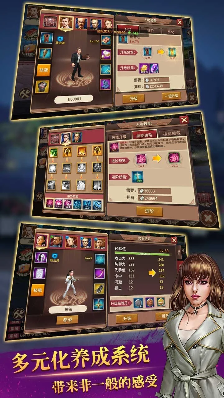 本作是大型RPG回合制手游。酷炫的游戏界面,既写实又Q萌的人物形象,将玩家带入紧张刺激的权力争斗的世界。之中。再现经典玩法,实现多人实时PK;野外世界boss,极品装备等你来拿;独有的党政系统,带领你一步一步走向权力巅峰!更有趣味副本、联盟约战、竞技切磋等丰富玩法让你来挑战!还在等什么,我们在权力的世界里等着你的到来哦~!