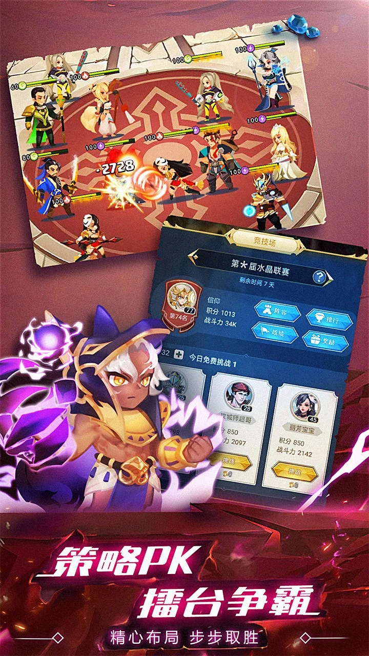 《水晶传说》是一款集卡牌、养成、策略为一体的Q版回合制战斗游戏。玩家通过召唤英雄来收集卡牌,解锁英雄的Q版战斗角色,通过挑战boss和挂机收集培养英雄所需的材料装备,不断提升英雄战斗力。并通过合成装备,洗炼被动技能,融合英雄等强化英雄实力,完成竞技场、副本等更高难度的挑战。