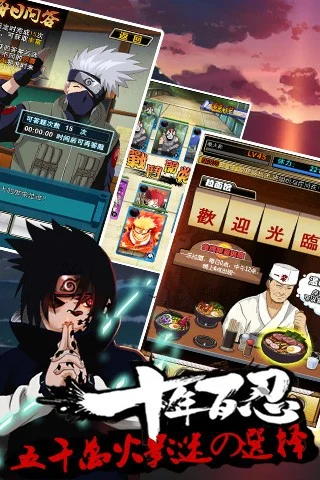 遵循全球第一人气漫画《火影忍者》原版剧情!以人气动漫“火影忍者”为题材的手机网游!游戏融十年百忍于一役,集卡牌对战、忍者养成、尾兽抓捕、好友交互等玩法于一体。并邀约日本集英社一流画师历时一年倾力打造,为火影爱好者带来最原汁原味的动漫体验。