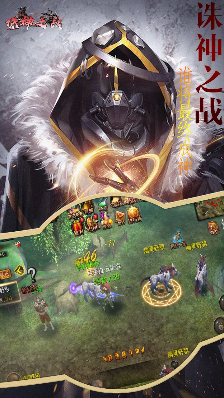 《诛神之战》是一款3D经典暗黑风对战MMORPG手游!轻挂机,重对抗,摆脱繁琐操作、拒绝无趣的升级,想挂就挂、想杀就杀,重燃当年的那份热血和激情。 摒弃传统任务和刷图的升级模式,挂机升级轻松高效,野外、副本想挂就挂,独创的离线挂机功能,让您随时随地战斗不止。