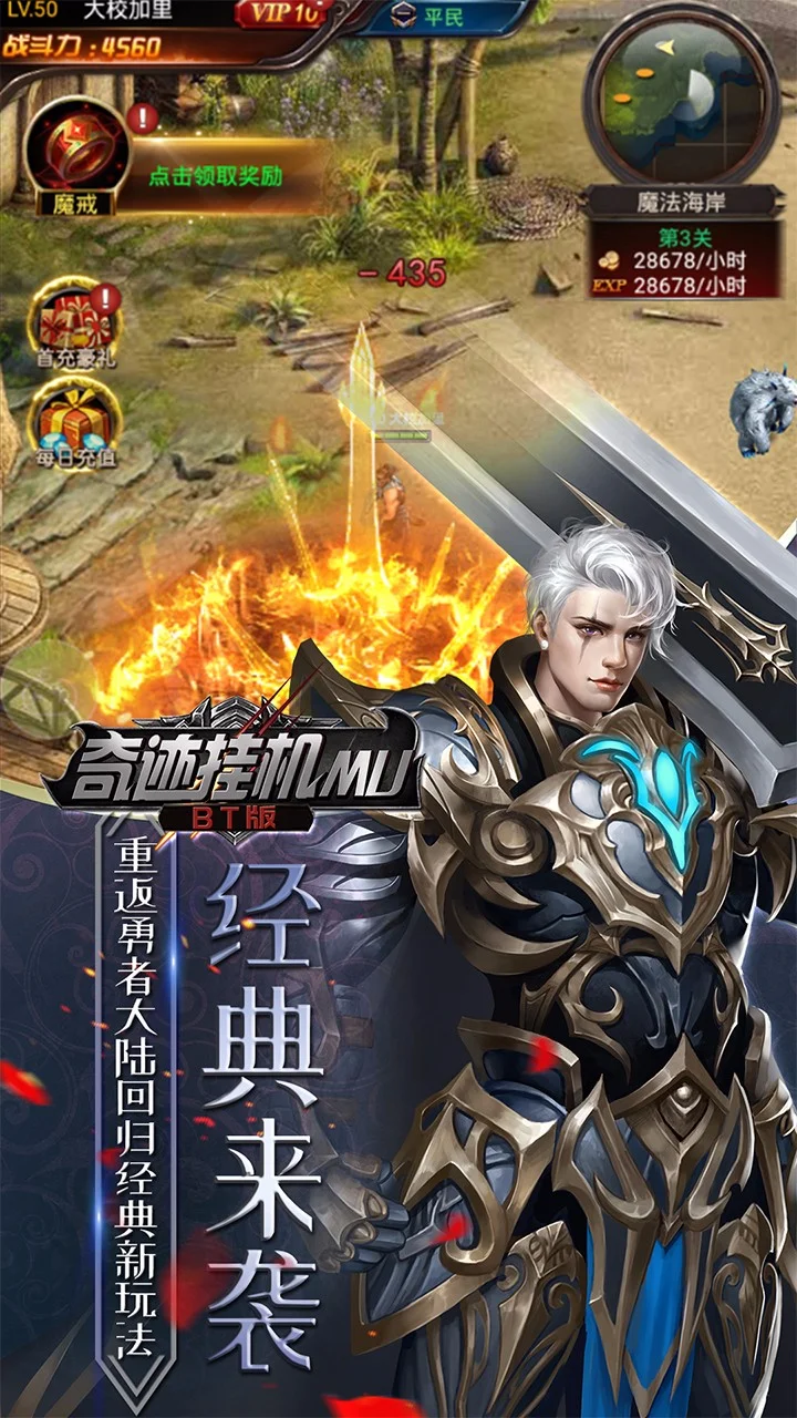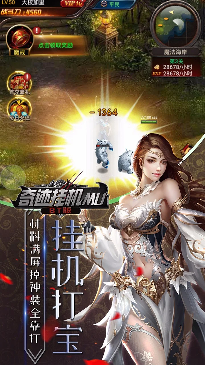 《奇迹挂机MU挂机》采用全新的3D引擎打造,全新玩法,挂机打宝,材料满屏掉,神装全靠打;自由交易,无任何限制,买卖随心所欲;神装进阶,卓越养成,华丽外观任意换;地城探险,惊悚刺激,颠覆传统玩法!叫上兄弟,重返勇者大陆!