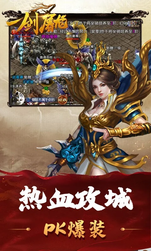 《一剑屠龙》是一款热血传奇类的2DMMORPG手游。简单而不失微妙的游戏操作,完美的职业搭配,不可替代的PK感受,行会战争等群战体系,让《一剑屠龙》拥有了独一无二的经典魅力!好友、组队、行会等丰富的社会架构,更让玩家在兄弟团队中体验人生百味。《一剑屠龙》传承十年传奇经典,血战到底,成就王者!十载传奇梦,同样的千人攻沙,不一样的打怪爆装,这是属于我的世界。战法道经典三职业,携兄弟齐心战天下。