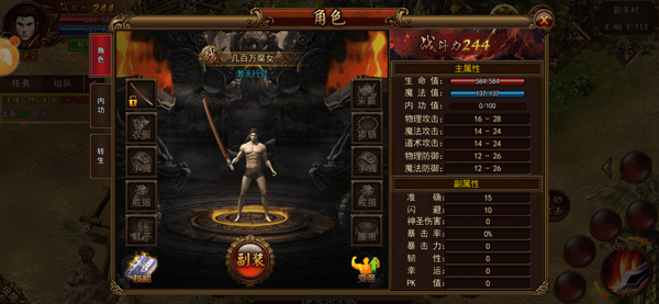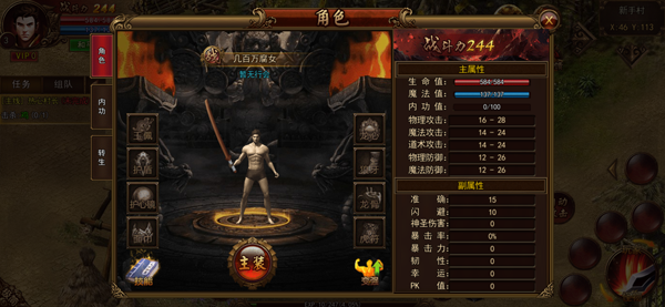 玩家按照等级作战升级可获得装备,装备可在玩家主界面头像位置查看,点开界面,内有主装和副装,在主装界面有功十件装备,分别是武器、衣服、左手镯、左戒指、鞋子、头盔、项链、右手镯、右戒指、腰带;副装共有八件,分别是有玉佩、护盾、护心镜、面巾、龙心、狼牙、龙骨、虎符。