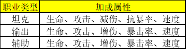 公会技能分3个职业类型,分别给对应职业提供属性加成。