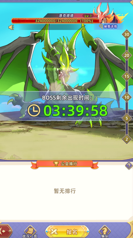 2、每日12:00~18:00为公会世界BOSS战的开战预告时间,如果玩家在期间无法上线的,也可挂机准备。在开战前先进行编队,最多可 设置5个小队进行战斗。