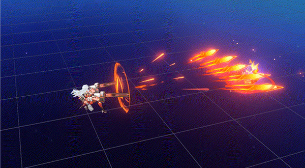 光速弹幕:对前方扇形区域持续引导输出,引导2秒可中途打断,共对4个目标造成6段共360%+5伤害,并减速20%,持续2秒,如果目标为怪物则目标数增加到8个。