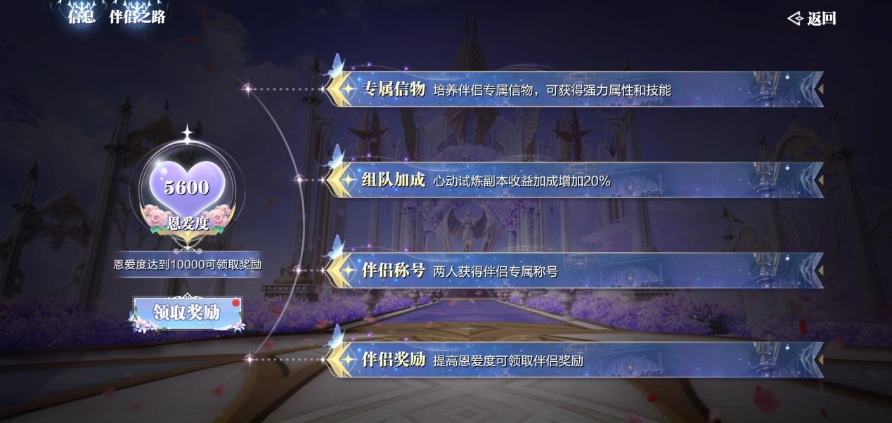 当然专属称号也是必不可少的,伴侣系统会根据伴侣等级和信物等级来奖励伴侣称号,信物等级为10阶5星时将解锁“天长地久”称号!到时候可就是真正的“老夫老妻”了。