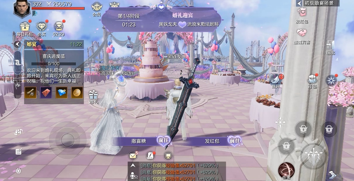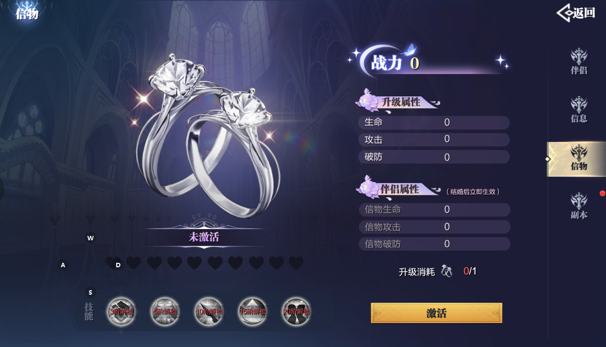 接下来就是属于小两口的时间了,新婚夫妇完成结婚典礼后,系统会准备一个信物即一枚闪亮的大钻戒,信物属性包含攻击、防御、生命等,可以提高自身战力。