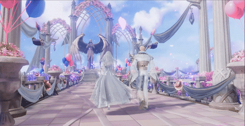 婚礼预约好了,没有宾客怎么行?进入婚宴后,新郎新娘点击【邀请宾客】按钮即可向全服发起邀请,同一时间在线的玩家都能有机会参加婚宴!接下来就是重头戏了,新婚双方会随机撒喜糖、发红包,撒喜糖可以增加祝福值,触发全场奖励,而发红包则能够为在场的宾客发放随机钻石奖励!作为一名有素质的宾客,收取了奖励肯定是要回礼的,大家在签到领奖时就可以为这对新郎新娘送上诚挚的祝福,祝福语会以弹幕的形式呈现,或者也可以在留言册中留下自己的美好祝愿。当婚宴达到某一时间,现场还会空降神秘宝箱,内含丰厚奖励哦~最后双方交换誓言,在欢呼声中成为《魔之序曲》新一对幸福的小夫妻!