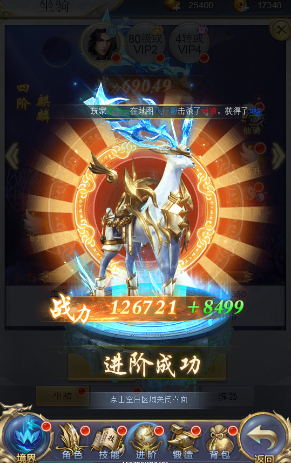 当我们有足够的坐骑进阶丹就可以通过点击自动提升来进阶坐骑了!