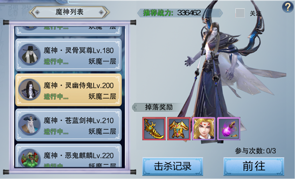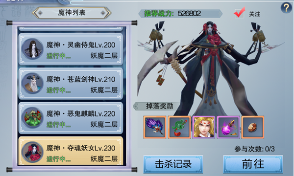在《梦回山海》中,当角色的实力达到了一定程度,就可以前往挑战魔神,击杀后会掉落顶级稀有装备和材料。点击“关注”对应的魔神还能实时了解到它是否刷新,赶快去寻找你“心仪”的魔神吧!