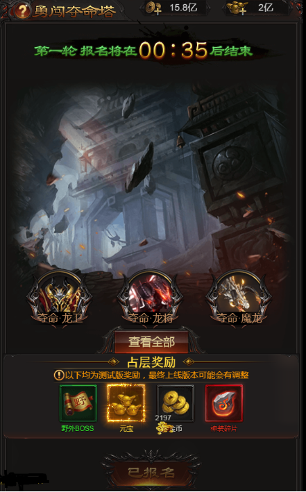 另外,《玛法世界》同时推出高难度爬塔副本——勇闯夺命塔。在夺命塔活动中,玩家需提前30分钟报名,活动开始后,玩家通过完成每层关卡活动的指定要求进入下层,达到的层数越高,活动结算后奖励越丰富!