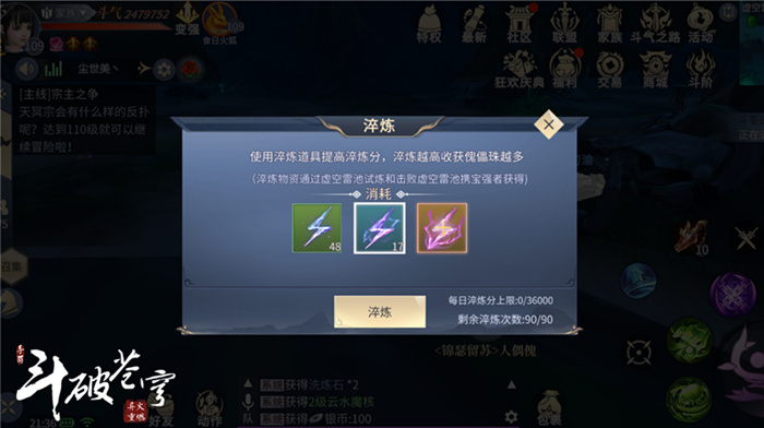 若每天只依靠虚空试炼任务获得雷电精华,每天是远远不够36000分的,建议斗者与家族成员组队击杀携宝强者来获得更多的雷电精华。