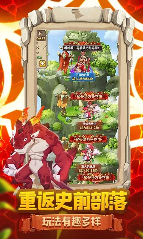 《疯狂酋长》正版授权原始题材回合制手游,携万元充值壕礼福利来袭! 开局升级送1000元福利,登录再送万元充值,免费升级满级VIP,全新超爆福利助力少年探险原始时代!各个伙伴自由召集,在原始部落之间,为了争夺资源领地,进行征战。萌宠集结,游戏内可驯服百种动物,点击方寸之间打造最强战队,一起踏上未知而精彩的冒险旅程。策略、建造、捉宠、驯服、宠物打书、竞技PK等玩法应有尽有,进入游戏即可一起畅爽神秘冰川世界。