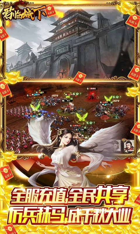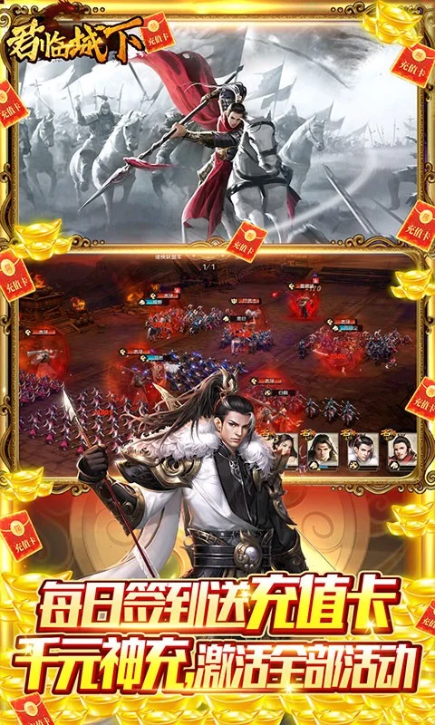 《君临城下》手游是一款东方玄幻SLG战争策略卡牌养成游戏,本作改编自著名小说《九州缥缈录》。手游以战争策略作为游戏的核心,游戏内独有的“阵法系统”、“神兵系统”、“英雄系统”可任意搭配组合,玩家可以先通过招募武将、发展城池、锻炼精兵、打造神兵积蓄自身的力量,另外手游内还支持全服玩家同屏竞技的大地图玩法,在100万格的宏大地图上与其他玩家群雄逐鹿、合纵连横、攻城略地、开疆拓土,最终攻克天启城,统一九州大陆。新版本全服充值,所有玩家充值共享,签到奖励大幅提升,每月可领千元神充,超多资源和珍贵道具等待玩家领取