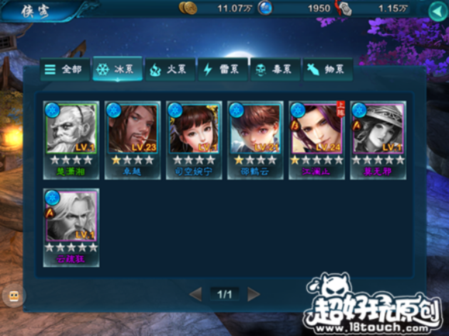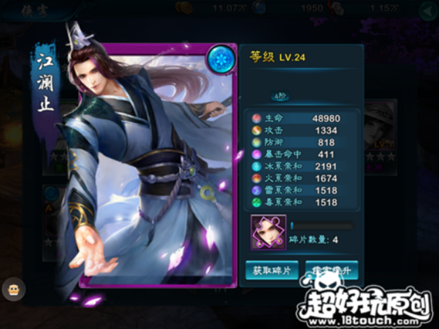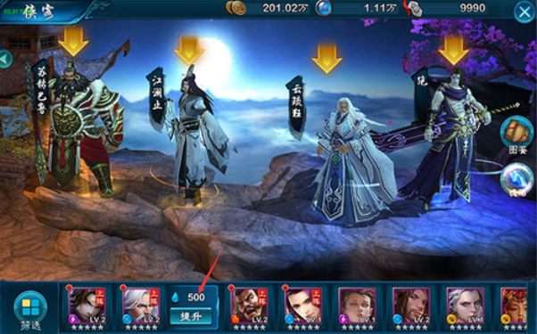 侠客升级:消耗侠义值和铜板提升侠客的等级,侠客等级不可超越主角。