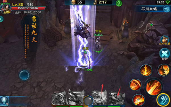 “出场技”是侠客的独有绝学,每个侠客的出场技效果都不同且非常酷炫。战斗中,玩家可以操作侠客释放“出场技”,将会消耗能量。(图中箭头所指)使用出场技时候,玩家可以点击侠客卡片,侠客的出场技将会释放在主角的位置上。当然,玩家也可以拖动卡片,将出场技释放在自己想要的位置上。