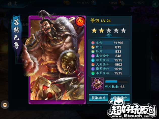 冰系侠客中的极品侠客是没有肉盾的,而苏赫巴鲁虽然作为一个火系的侠客,但是他却是非常肉的一个侠客。可以在战斗中吸收非常高的输出。