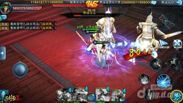 与现有的“帮派会战”不同,帮派战将是以2个帮派进行PVP的战斗系统。策略性更是不可同日而语,帮派战将会考验帮主是否是一名称职的指挥官。帮派战是以战斗时间结束后,每个房间的胜负结果来评判最终花落谁家。