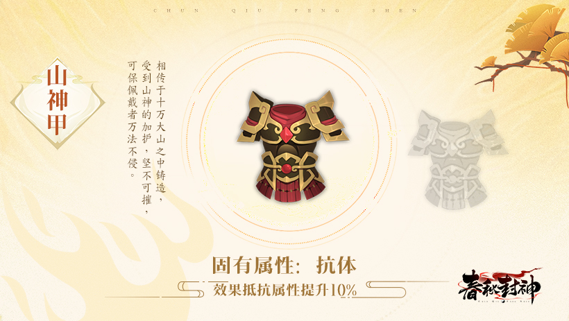 相传于十万大山之中铸造,受到山神的加护,坚不可摧,可保佩戴者万法不侵。
