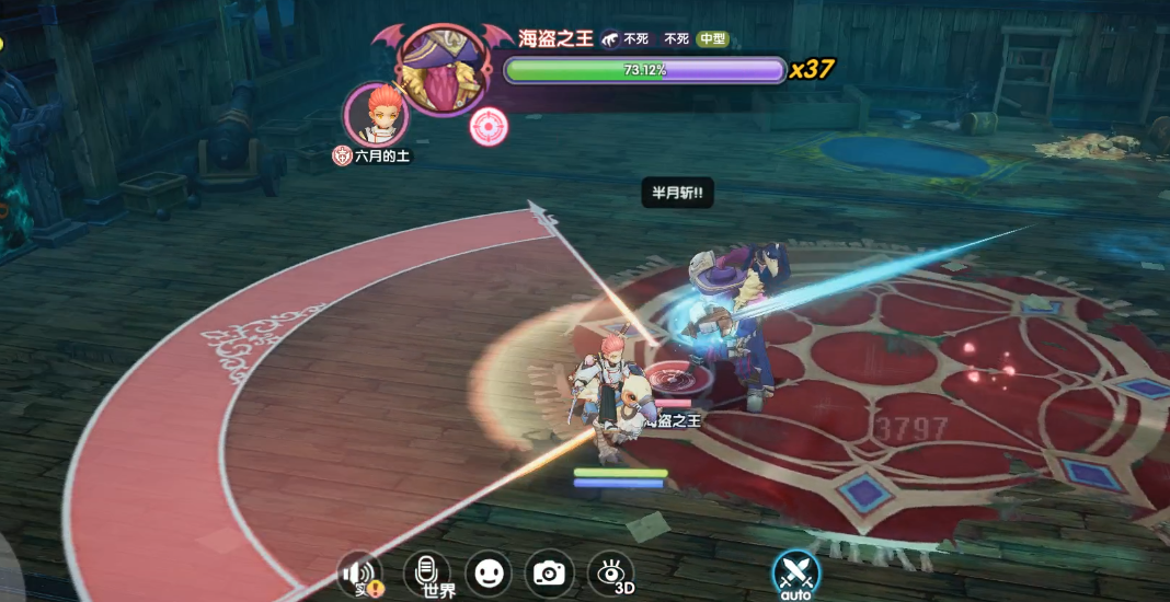 技能效果:海盗之王向自己面前扇形面向内蓄力挥出一刀,造成高额伤害。