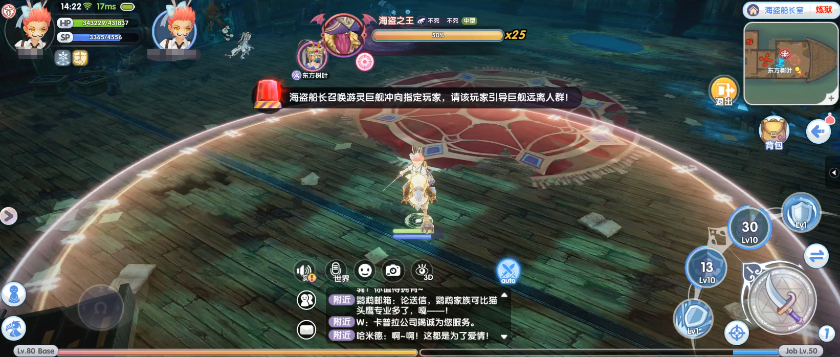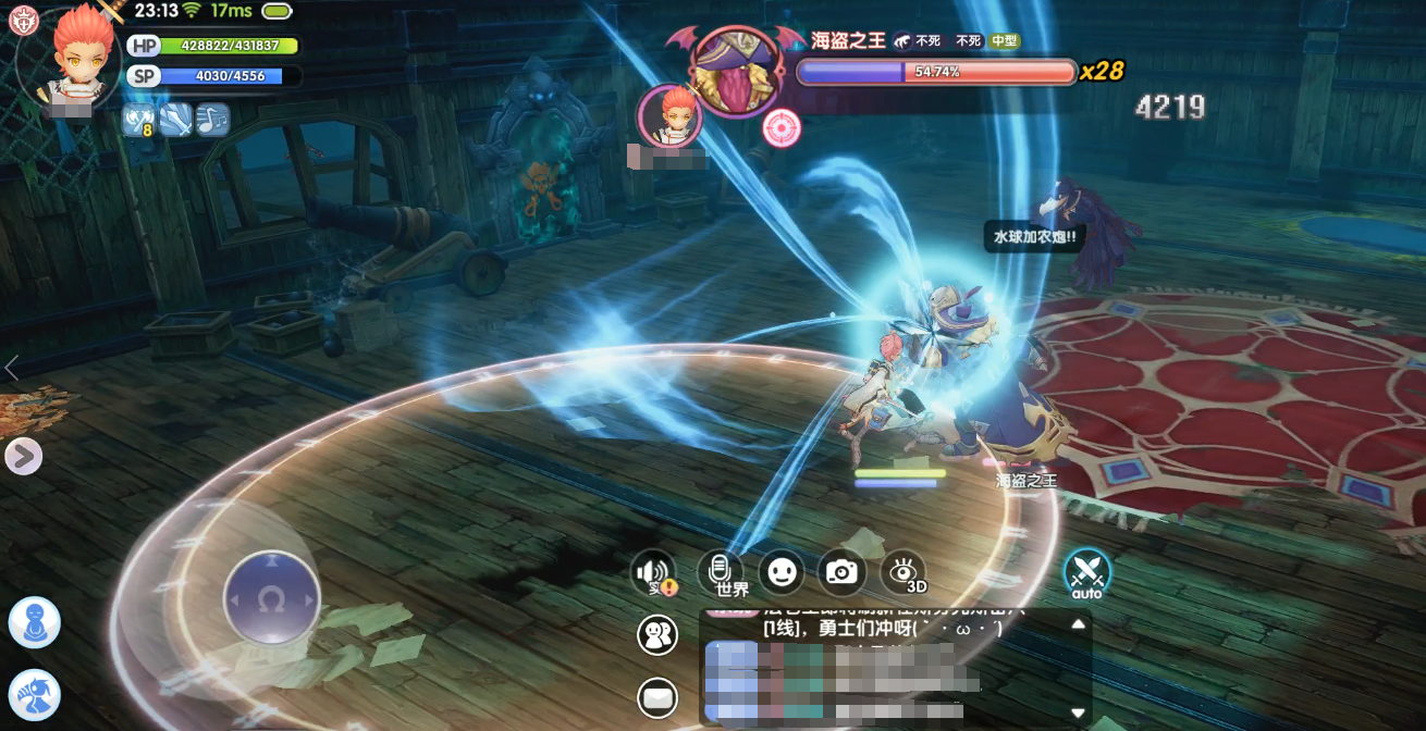 技能效果:BOSS召唤全屏技能古老游灵船,将场地内几乎所有的面积全都覆盖,被舰船冲撞后会被水炮禁锢,并受到水属性魔法伤害。