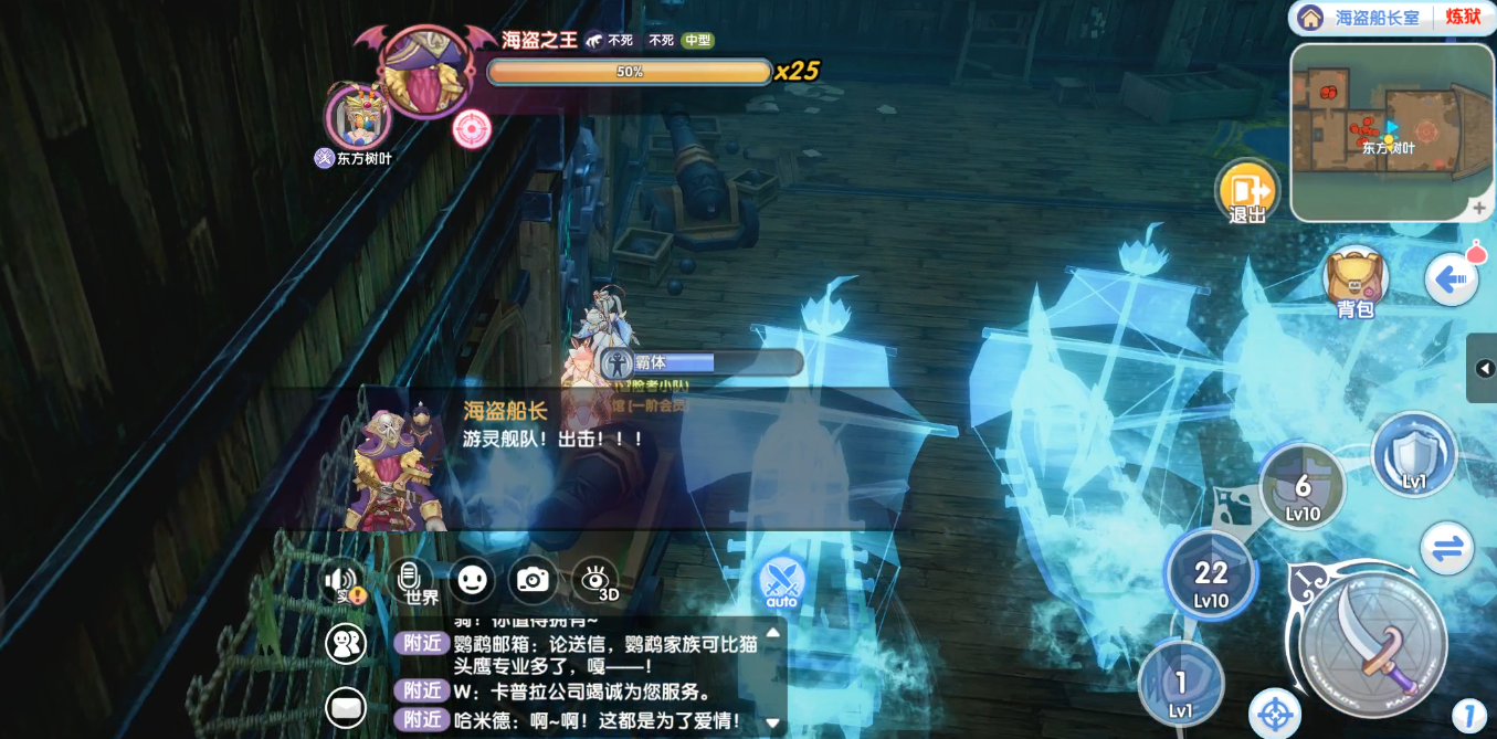 普通难度的海盗船长室有两个阶段,血量50%以上为第一阶段,血量50%以下为第二阶段。