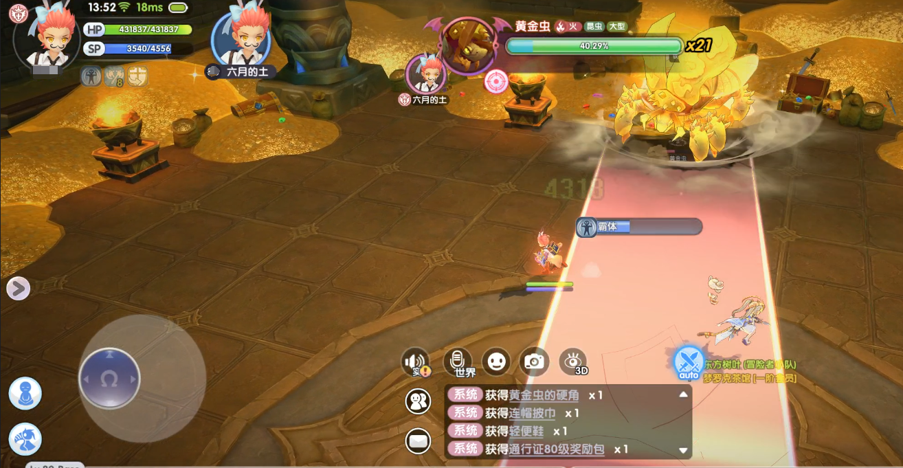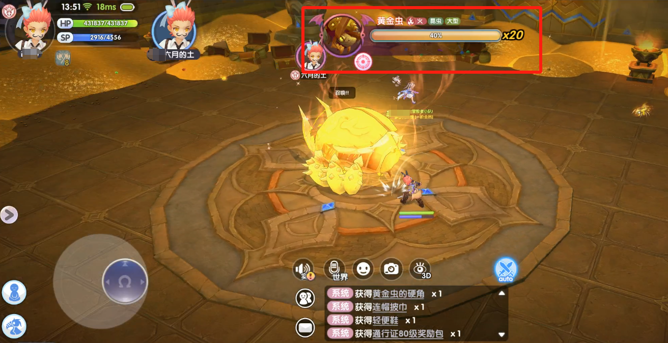 困难难度的副本BOSS黄金虫有三个阶段,BOSS血量80%以上为第一阶段,80%以下为第二阶段,40%以下为三阶段。