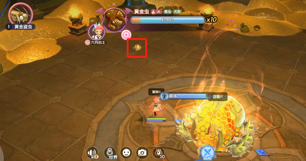 应对措施:在黄金虫飞起蓄力期间离开伤害范围圈即可轻松躲避技能。