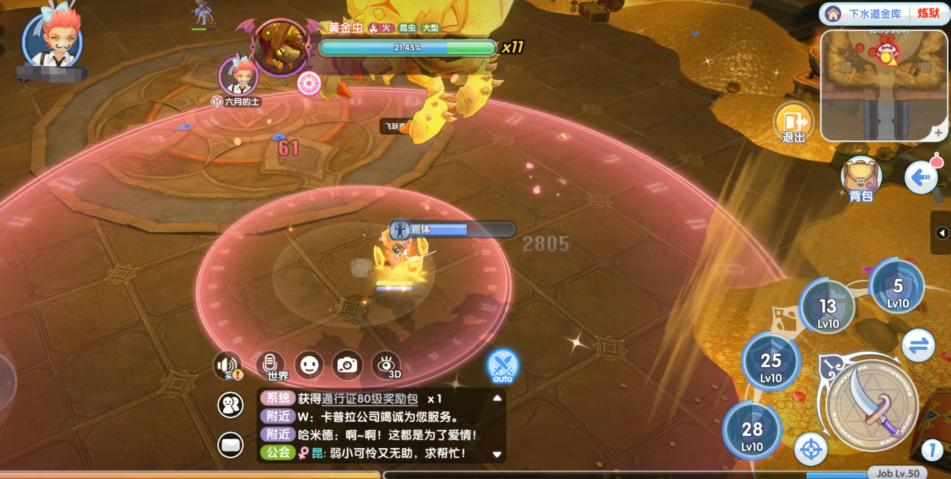 注意!在普通下水道金库副本中,一阶转二阶时出现的小黄金虫回血机制,在困难本中是二阶段转三阶段机制。